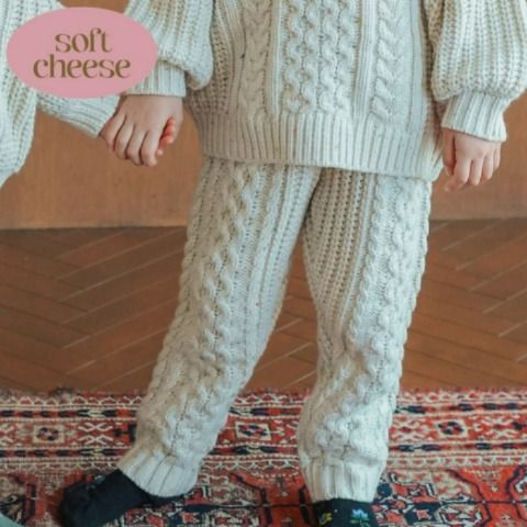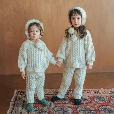 立体的な編地がかわいい、ニットロングパンツです。