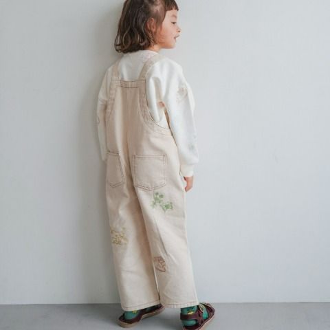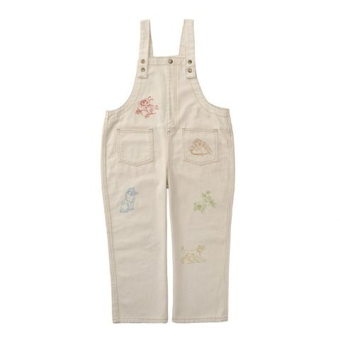 動物やお花の刺しゅうがかわいい、オーバーオールです。
