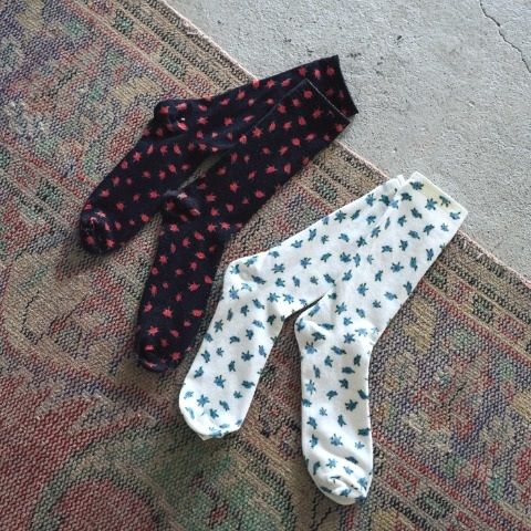 小花柄の総柄プリントがキッチュな雰囲気のクルーソックスです。