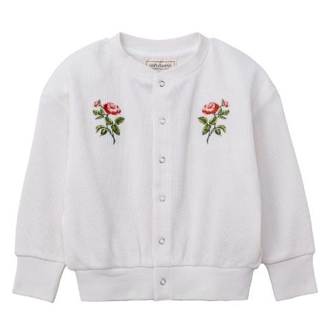 お花の刺しゅうがかわいい、綿素材のカーディガンです。