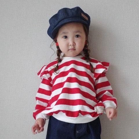 カラフルな配色が可愛いボーダー柄のトレーナーです。