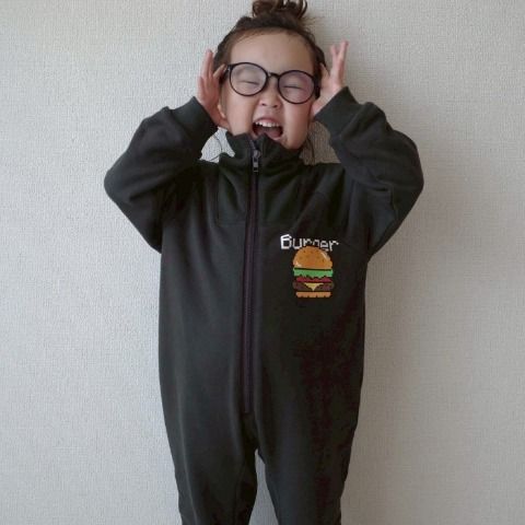 バックのハンバーガー柄のシリコンワッペンがポイントのカバーオールです。