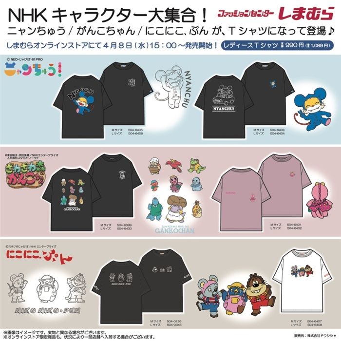 しまむら『NHKキャラクター』コラボを2026年4月8日(水)~販売します。にこにこ、ぷんの半袖Tシャツがラインナップ!