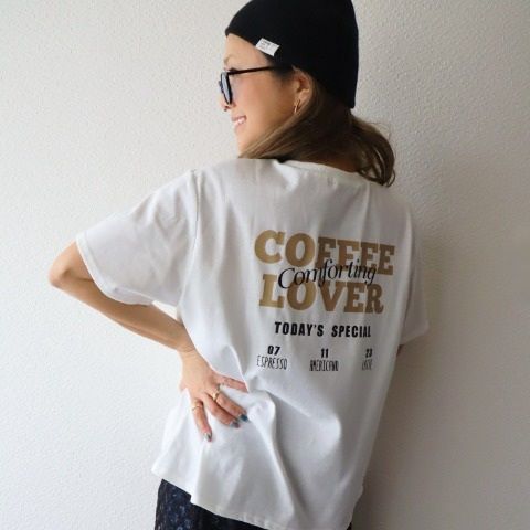 ゆるっと着られるシルエットに、バックのロゴプリントがアクセントになったカジュアルTシャツ。