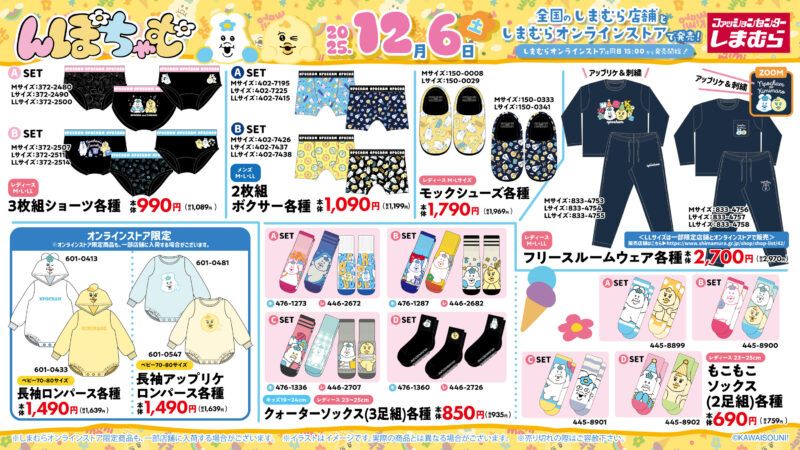 ≪商品ラインナップ≫しまむら『んぽちゃむ』コラボ 2025年12月6日(土)発売