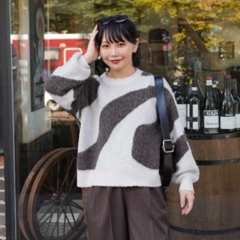 ふんわり柔らかな起毛素材を使用した、存在感抜群のクルーネックニット♪