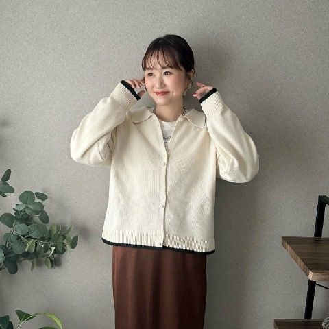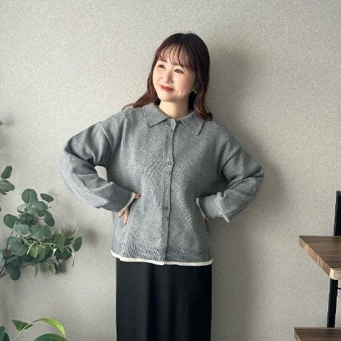 レディース 襟付き配色ニットカーディガン(omi) 1,790円(税込 1,969円)