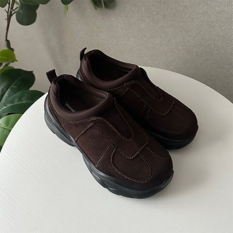 ステッチとトレンドの微起毛素材を使用したスリッポン。