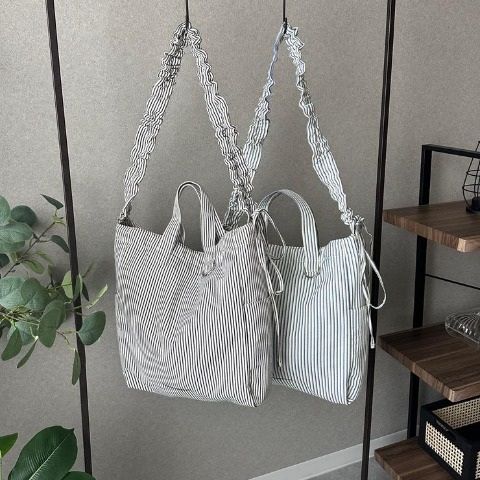 爽やかなストライプ柄が目を惹く2WAYショルダーバッグ。