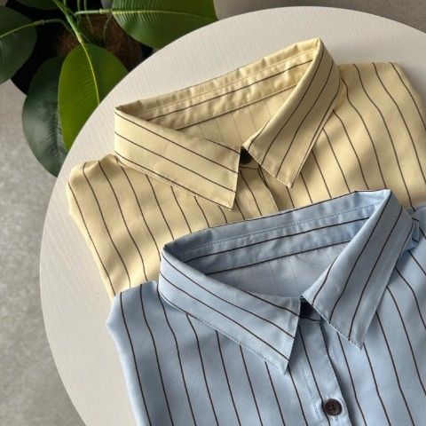 レディース フリルストライプシャツ(omi) 1,790円(税込 1,969円)