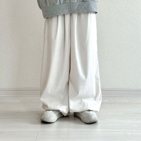 コーデュロイ素材のゆったりしたシルエットのパンツ。