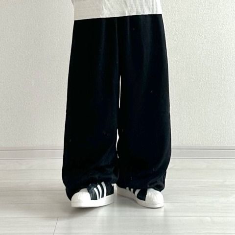 サイドに太めのラインテープを施した裾ドロストのパンツになります。 ストリート、フルジョスタイルにおすすめ。