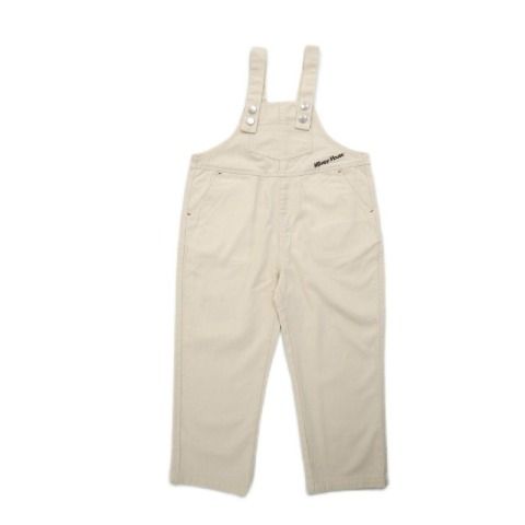 さりげないロゴの刺しゅうがかわいい、ツイル素材のオーバーオール。
