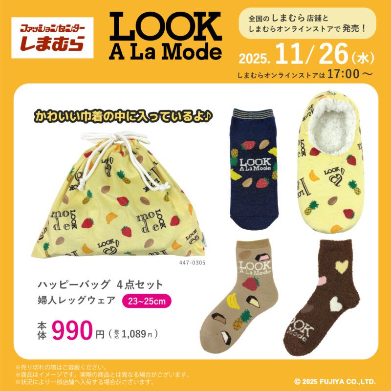 しまむら『ミルキー、カントリーマーム、LOOK』コラボ!ソックス+ルームカバー+巾着セットのハッピーバッグが2025年11月26日(水)より新発売!