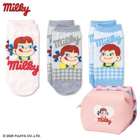 ミルキーのソックスがかわいいポーチに入った3足セットが登場♪
