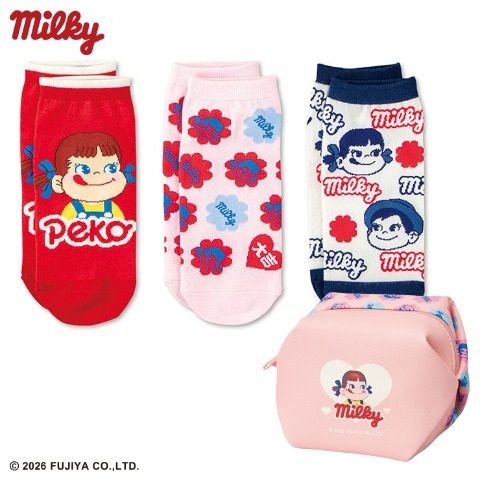 ミルキーデザインのソックス3足が、かわいいポーチに入って発売✨🧦