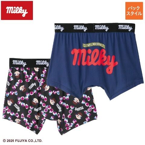 不二家のMilkyとコラボしたボクサーブリーフが新登場。前閉じ仕様・ストレッチ性のあるベア天素材ではき心地快適。かわいいPekoちゃんとロゴデザインで普段使いにもおすすめです。