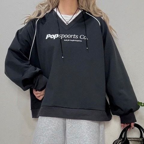 Vネックにライン入りのラグランスリーブでユニフォームっぽいトレンド感を持たせつつ、袖口にはボリュームを持たせることでほんのり女子っぽさをプラスしています。