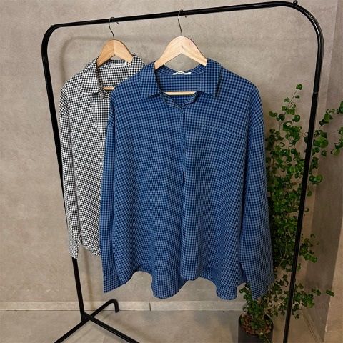 肌寒い時期にもぴったりな、ゆるっと着られるオーバーサイズのギンガムチェックシャツに仕立てました。