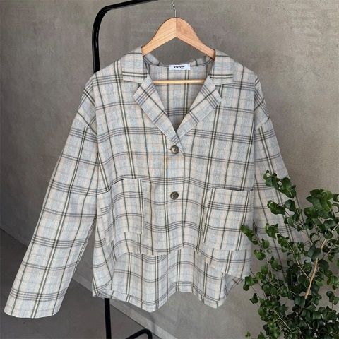 ゆったりとしたドロップショルダーが生み出すリラックス感と、1枚で着るだけでこなれた印象を演出できるジャケットシルエットシャツです。前後で丈に差をつけた裾のデザインが、動きのあるシルエットを作り出し、スタイリングにさりげないアクセントを加えます。実用性のあるポケット付きで、デザイン性だけでなく機能面にも配慮。シックなチェック柄が大人の落ち着きを感じさせ、抜け感のある雰囲気を引き立てます。シャツとしてはもちろん、軽い羽織りとしても活躍する、着回し力の高い一枚です。