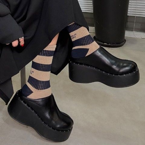 かかとが無くさっと履きやすく、ボリューム感のある厚底ソールで自然にスタイルアップ◎