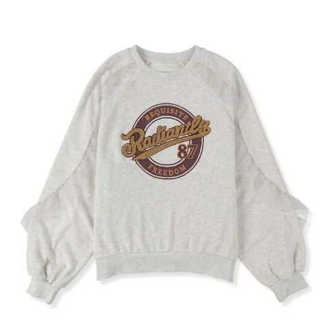 ネックから後ろ袖まで大胆に入れたチュールフリルが着映えする裏毛素材のスウェットトップス。