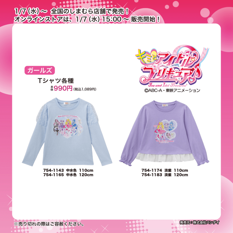 全国のしまむら店舗で『キミとアイドルプリキュア♪』のアパレルアイテムが発売✨