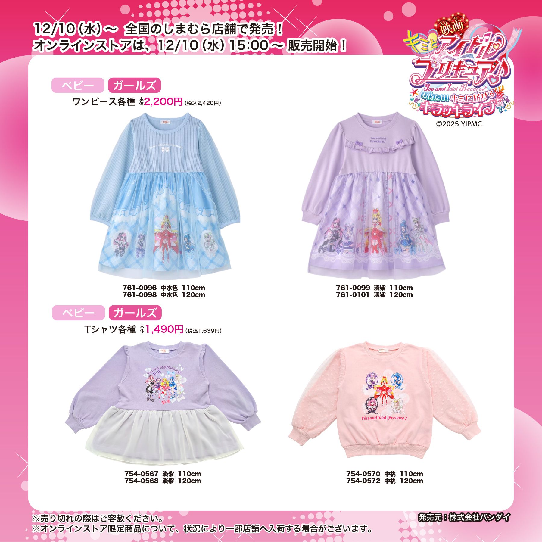 3/19(水)~全国のしまむら店舗で『キミとアイドルプリキュア♪』のアパレルアイテムが発売!