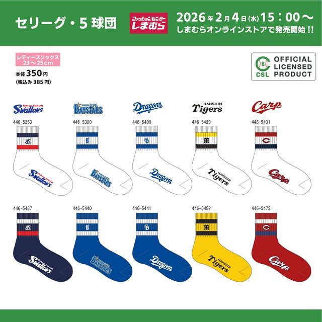 しまむら『プロ野球 セ・リーグ』コラボ!ソックスも同日より発売します!