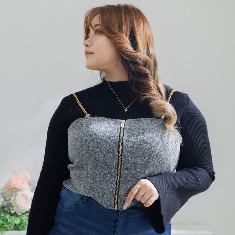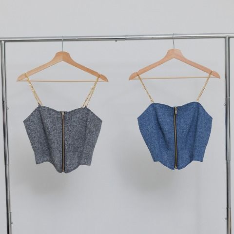華奢なチェーンストラップがスタイリングにアクセントをプラスするビスチェ
