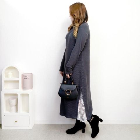 サイドスリットが抜け感を演出し、一枚でもレイヤードでも着こなし自在!