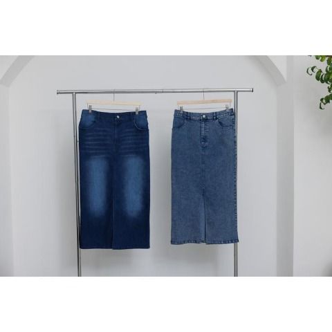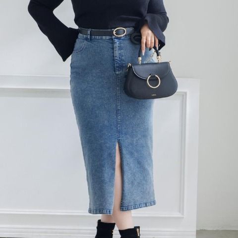 すっきり見えと動きやすさを両立した、ストレッチデニムスカート。