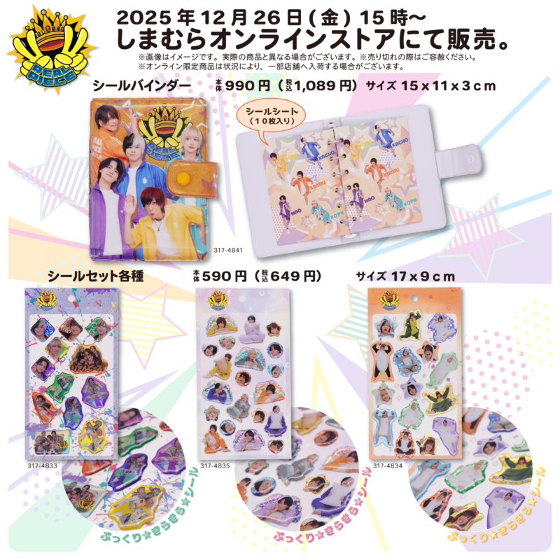 しまむら『リアルピース』コラボを2025年12月26日(金)~販売します。シールセット、シール帳がラインナップ!