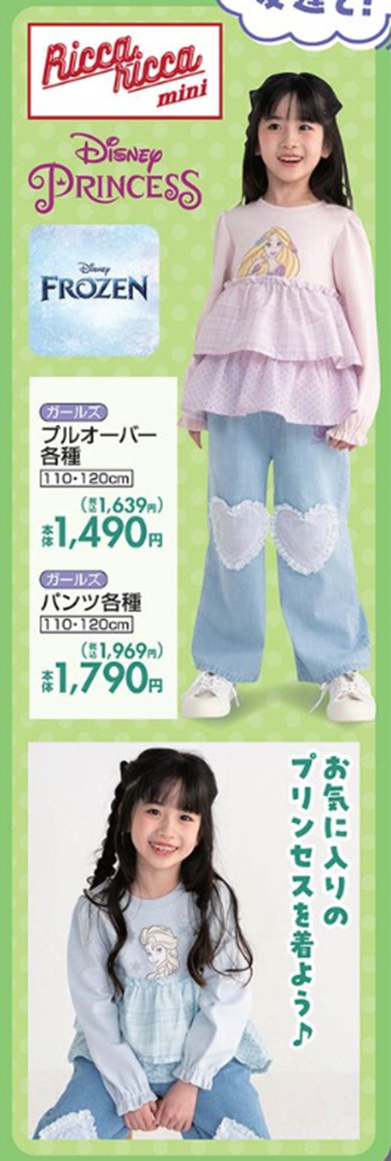 しまむら『Ricca Ricca(リッカリッカ)』コラボを2026年1月27日(火)~販売します。ディズニープリンセスのエルサ、ラプンツェルの春の子供服がラインナップ!