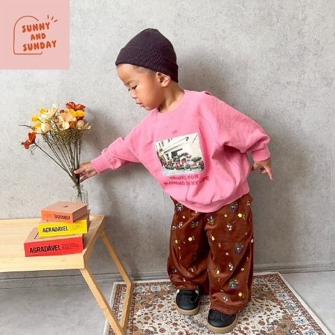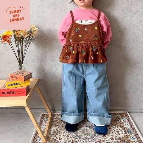 ベビー ベロア刺しゅうワイドパンツ(80~100cm・suuny and sunday) 1,490円(税込 1,639円)