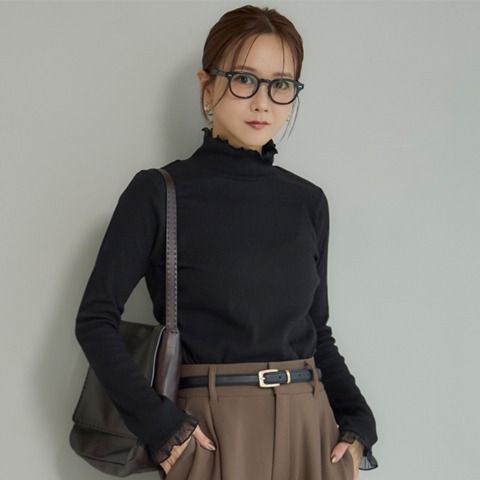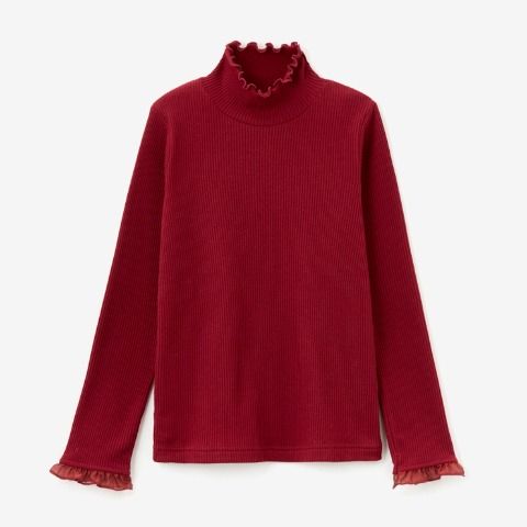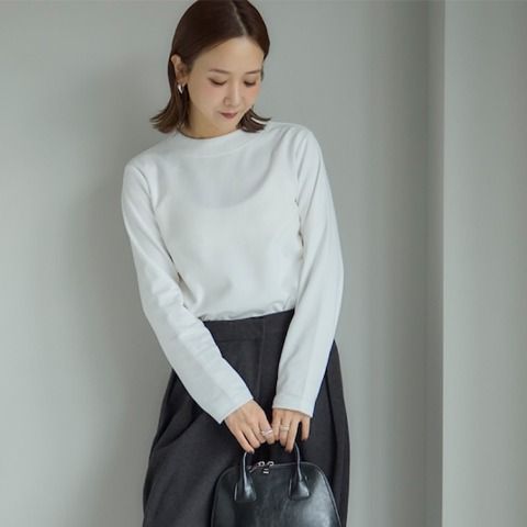首まわりは胸元が開かずあたたかいモックネックのデザイン。