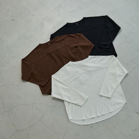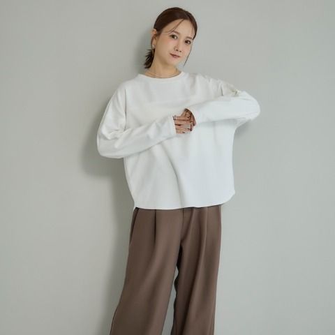 前回大好評だった袖シアーがポイントのテレコトップスです。今回は温かみある裏起毛素材になっています。シンプルなシルエットなので派手になりすぎず、どんなボトムスとも合わせやすいのが魅力。1枚でコーディネートが決まる主役級のトップスです。