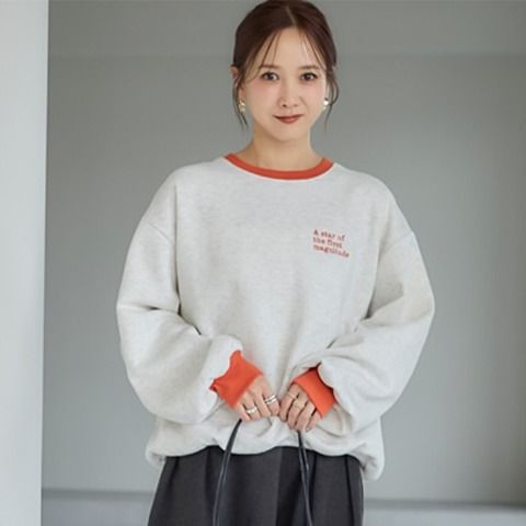 トレンドど真ん中の配色をいかした裏起毛トレーナーです。