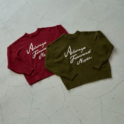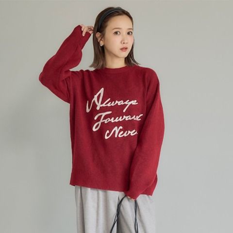 どんなボトムにも合わせやすい使いまわしができるロゴニットです。