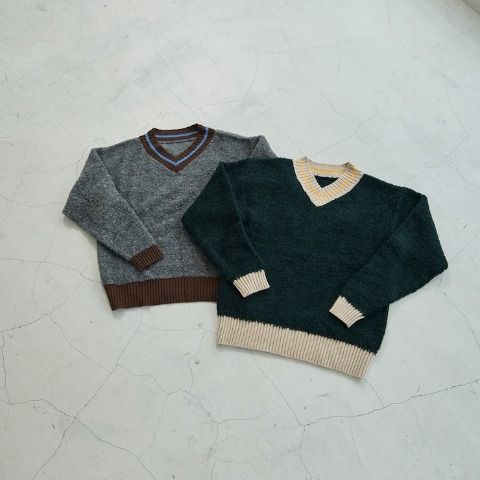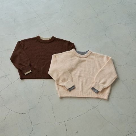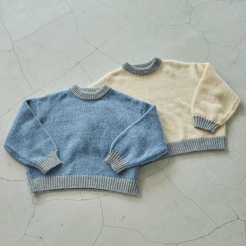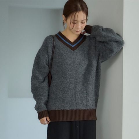 衿、袖口、裾リブ配色が目を引くざっくりニットプルオーバーです。