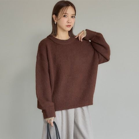 シンプルなシルエットなので合わせるボトムでカジュアルにも可愛くも着こなせるのでいろんなコーディネートを楽しんで頂ける着回しできるニットです。