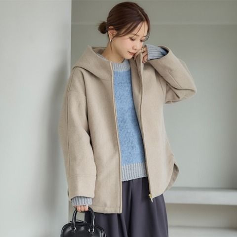 フードがあるデザインでほどよくカジュアルな印象に。