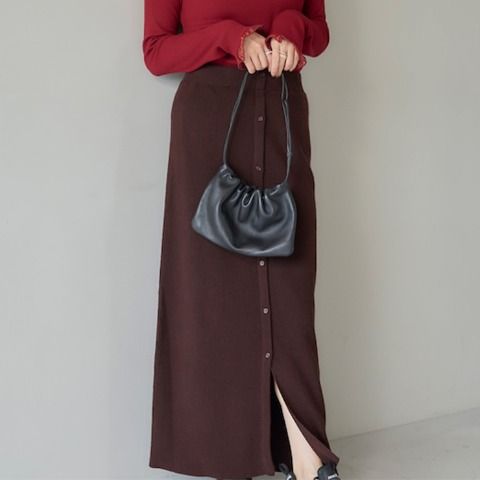 前ボタンのついたスリットデザインで、抜け感のあるコーデを演出します。