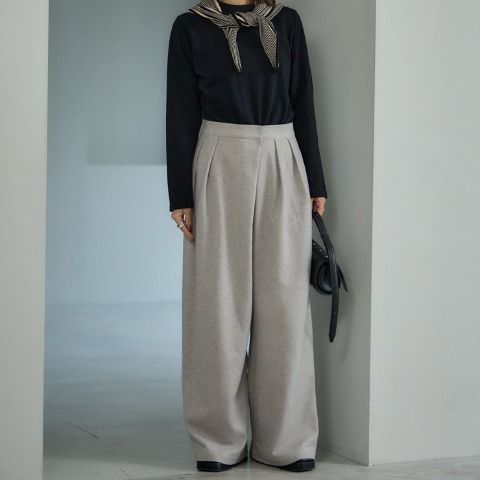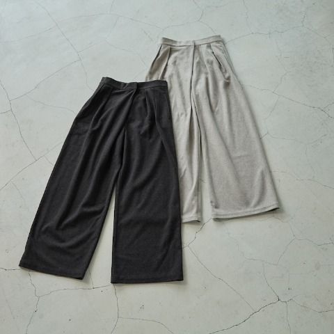 あたたかみのある起毛素材。 ラップディテールがポイントの2タックワイドパンツ。