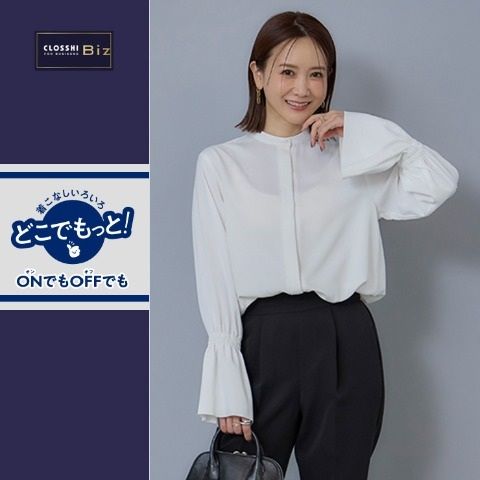 セレモニーシーンでもこのブラウスを着用するだけで今年らしい着こなしになります。