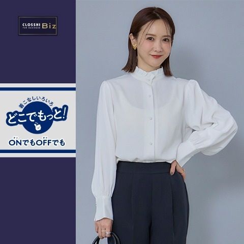 セレモニーシーンにも通勤にもカジュアルにも着用が出来るトレンドのブラウスです。