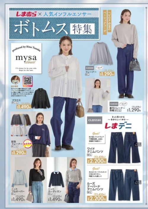 しまむら『田中里奈』コラボ!mysa closet (ミーサ クローゼット)のデニムとトップスが2026年1月31日(土)より発売!ボトムスフェア!