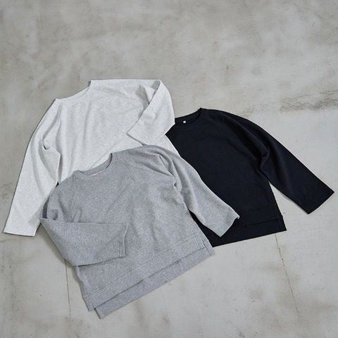両脇裾にスリットを入れた、ラグラン袖デザインのプルオーバー。