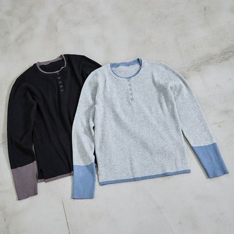 太めのリブ衿幅で胸元が開かず、肌寒い日も暖かく着用できます。