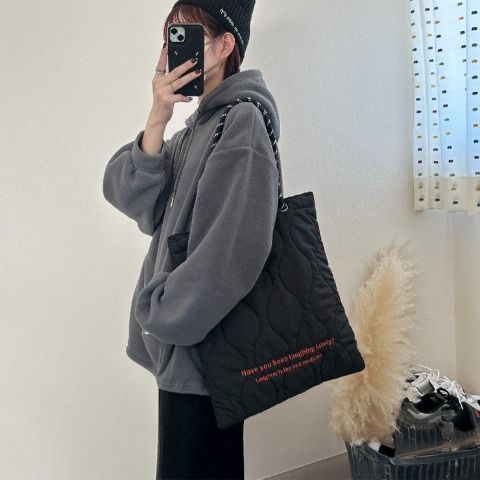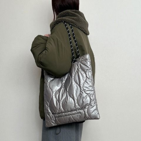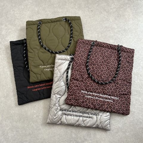 軽くて持ちやすい、ふんわりキルト素材のトートバッグ。